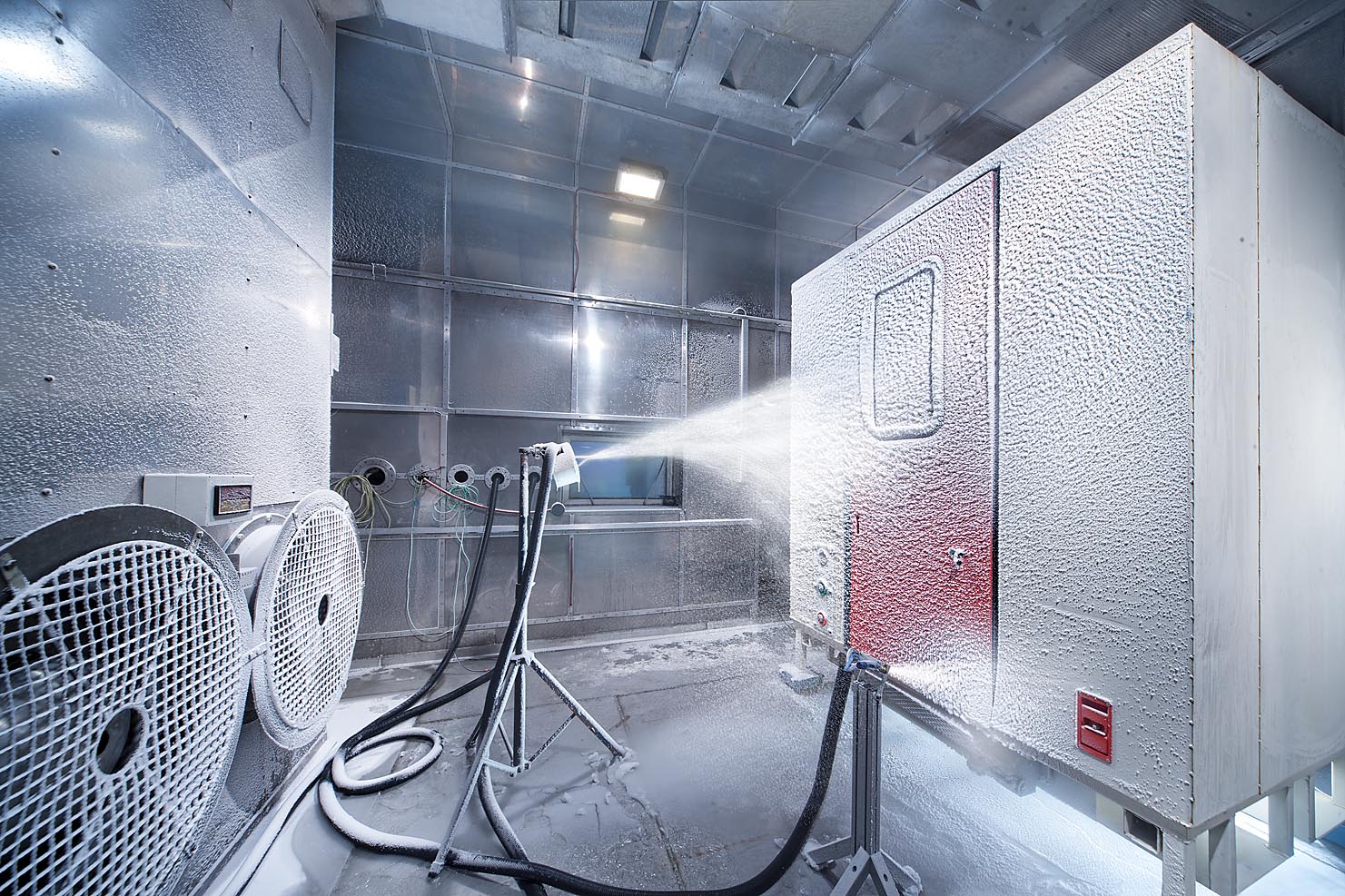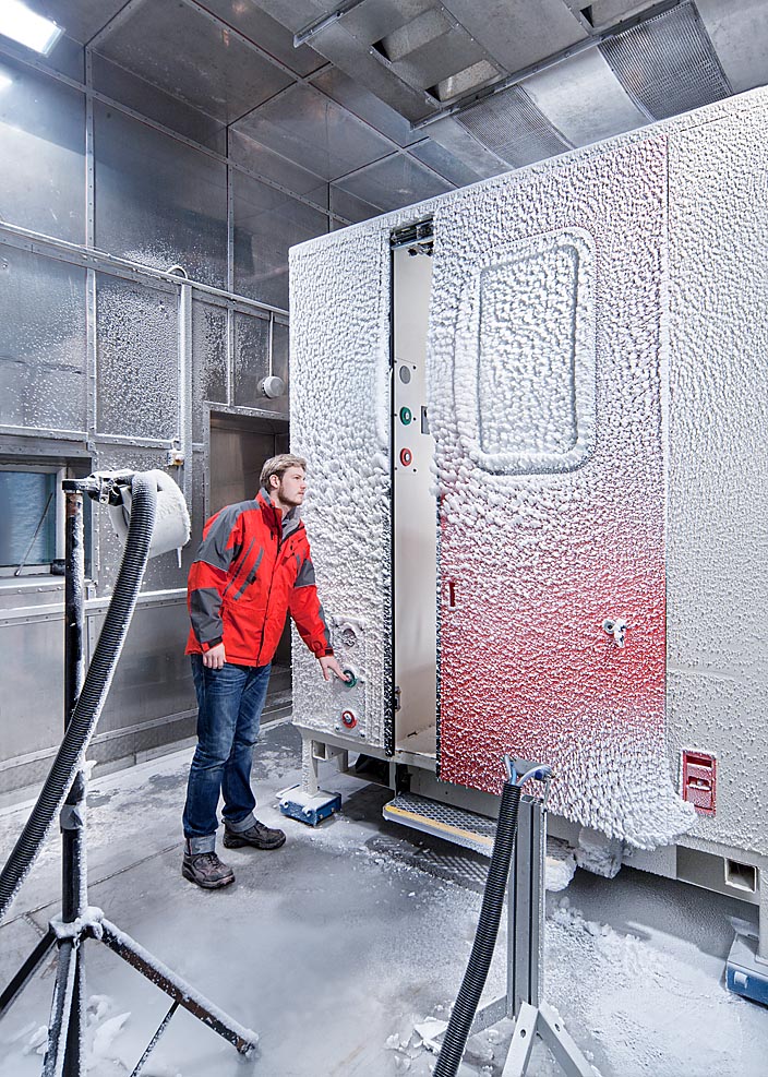 Unter verschiedensten Bedingungen werden Fahrzeuge oder Teilgruppen davon verschiedensten Tests unterzogen. Ob bei starken Minustemparaturen in der Klimakammer mit zusätzlicher Beschneiung, extremer Hitzebelastung oder UV-Bestrahlung, wir sind mit der Digitalkamera und wenn nötig aufwändigem Licht dabei, teilweise auch ferngesteuert.