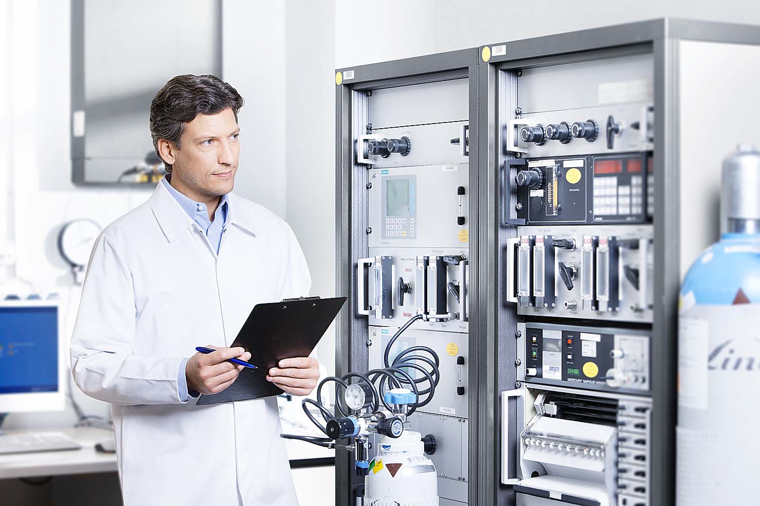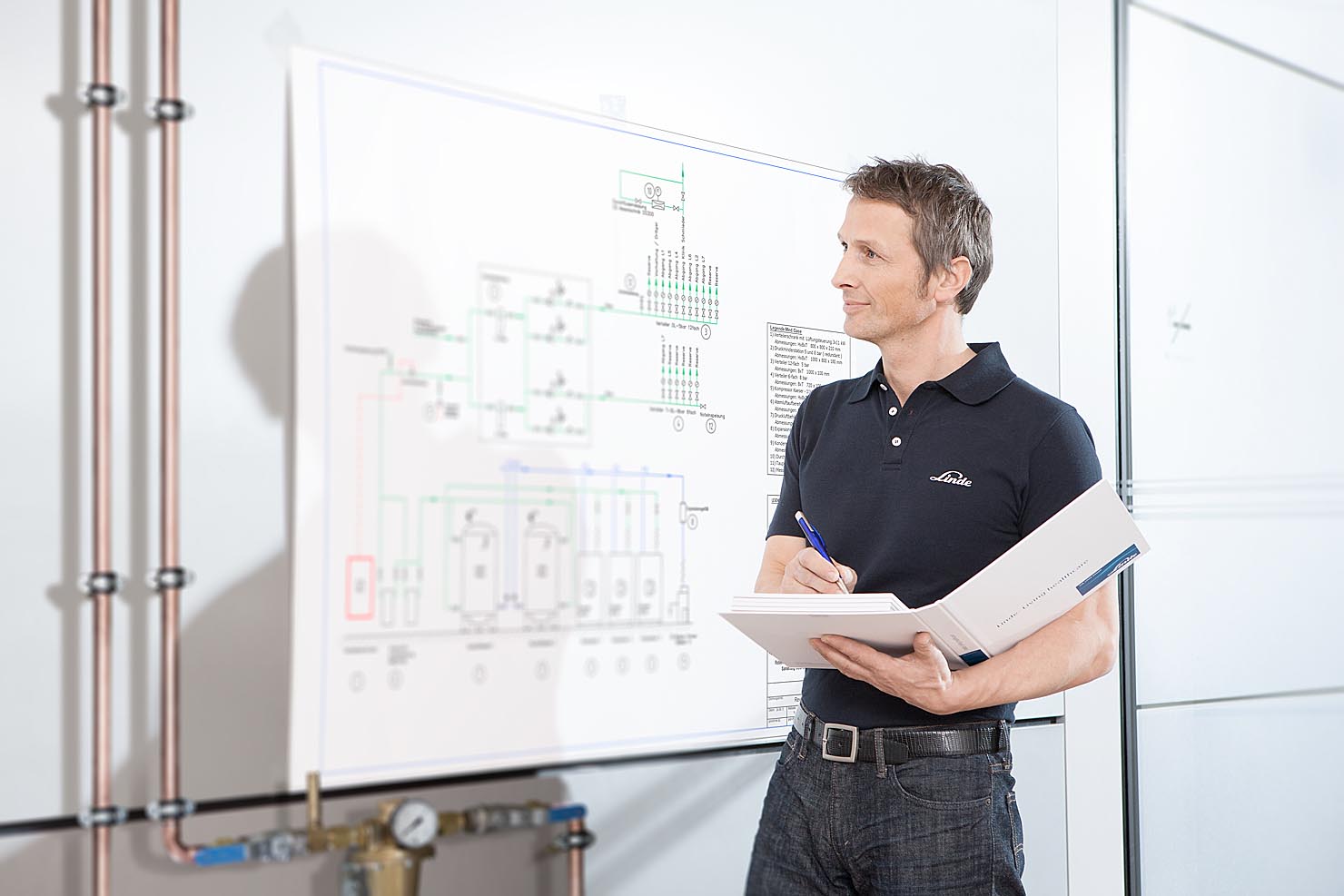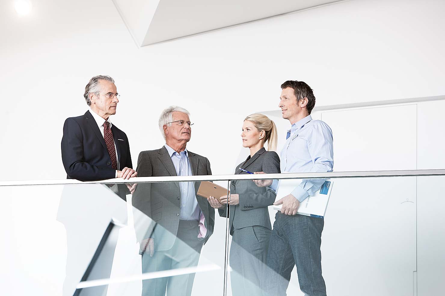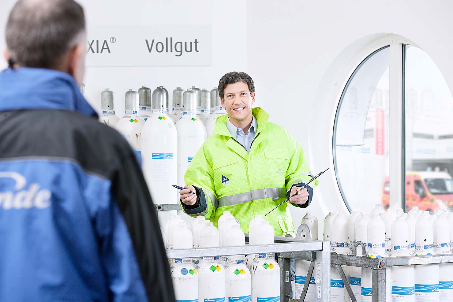 Interessant war die fotografische Umsetzung der Großraumbüros, die komplett in angemieteten leeren Räumen von Stylistin Nicole Hannay in glaubhafte Service-Center gestylt wurden.